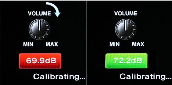 當(dāng)音量進(jìn)入72dB~78dB的范圍時,就會變成綠色色塊,表示超低音的音量已經(jīng)調(diào)整到理想程度。
