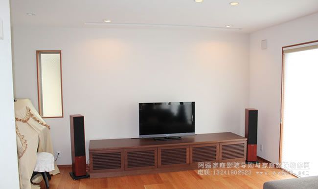 100寸電動幕布,電視柜和兩邊的落地主箱是標(biāo)配