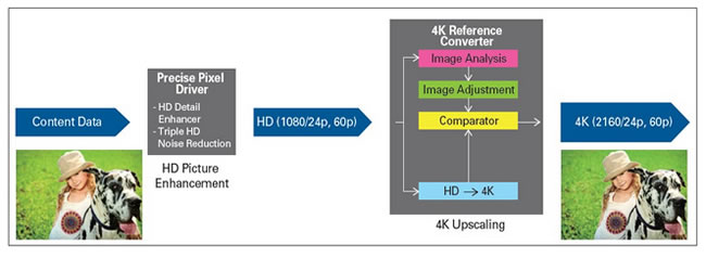 藉由整合「高精度畫素處理器」的HD高畫質影像處理技術以及全新開發的「4K參考級影像轉換器」所帶來的超高解析4K升頻器,讓極度情感豐富的影像自然呈現,讓你感受進化到更高層次的絕佳Full HD高畫質影像內容。