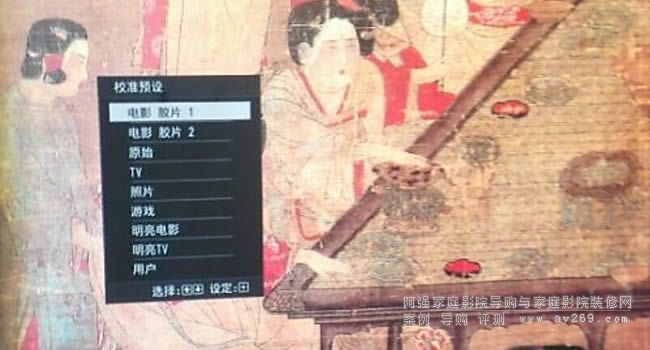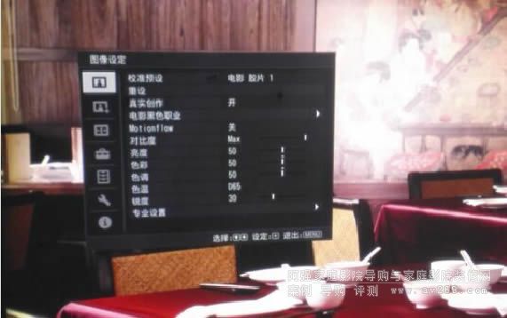 VPL-VW528的菜單和以前沒有變化,依舊提供了非常豐富的調節選項。比如提供了九個預設模式:電影膠片1、電影膠片2、參考、TV、照片、游戲、明亮電影、明亮TV以及用戶等共九個預設模式。“電影膠片1”和“電影膠片2”是VPL-VW528出廠時已經調教得很好的模式,這兩個模式之間的差別在我看來主要是色彩、對比度和色溫上,如果你是不懂調節的普通消費者,那么這兩個預設模式完全能夠滿足你的需求,僅需要在兩者之間選擇其一即可。如果你的影音室遮光條件不好,也可以選擇“明亮電影模式”;如果你是利用VPL-VW528來觀看電視節目,那么“明亮TV”是個不錯的選擇。