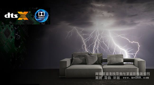 在家中享受基于聲音對象的Dolby Atmos(杜比全景聲)以及DTS:X™音軌,一個個獨立的聲音物體,如鳥叫聲、雨點落下、飛機的轟鳴等,以不可思議的方式自上而下、四處流動,在三維空間里真實呈現。頂部聲場的加入,讓您感受全方位的聲音包圍感。基于聲音對象的每一個元數據都單獨混錄至音軌中,因此聲音物體能夠自由靈活在揚聲器之間移動,帶來逼真的臨場感,仿佛身臨其境。阿強家庭影院導購網歡迎您光臨