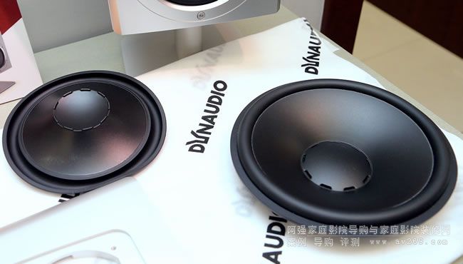 這是Contour 60的15M38中音單體(左側)與24W65低音單體(右側)所使用之MSP錐盆,前者為背面、后者為正面。雖然看似與前代一樣,但其實是全新之設 計,Dynaudio透過FEM分析修改錐盆的開口形狀,使MSP錐盆更輕、更薄(15M38振膜厚度由0.5mm縮減為0.4mm),速度更快、反應更靈敏,更難得的是仍維持以往較厚振膜的高剛性,具有更高的承受功率與更長衝程,以及不同音量下一致的運動特性。此外,Dynaudio的MSP錐盆採一次 壓鑄成型,中間防塵蓋就是錐盆的一部分,和一般常見中央留孔之后再黏上防塵蓋不同。如此一來,當錐盆內的震動傳遞到中心時,就不會因黏膠而影響震動的一致性,從而使聲音表現更好。如同過去該廠的喇叭製品,Dynaudio Contour 60的承受功率極高,以大功率擴大機來驅動可以得到更強勁的能量與動態表現,不過Dyanudio表示全新開發的Contour系列其實并不難推動,此次試聽時只動用了每聲道功率輸出125瓦(8歐姆負載時)的Ayre AX-5 Twenty綜合擴大機,在這個面積接近十坪的視聽室裡就已經唱得虎虎生風了。照片右側是前端搭配的數位訊源Ayre DX-5。