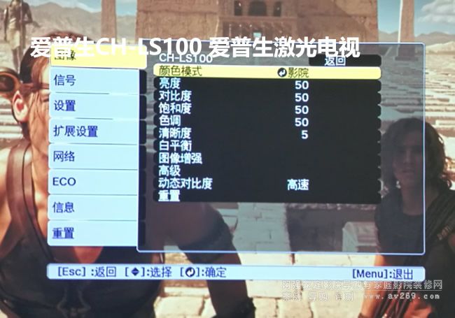 CH-LS100的菜單調節界面,與愛普生其他家用投影機界面相差不大。