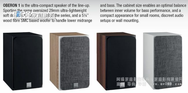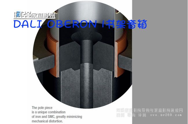 OBERON是首個使用DALI SMC(Soft Magnetic Compound)專利技術的入門系列,SMC可以大幅降低非線性的磁鐵失真,OBERON使用全新設計大尺寸29mm極輕量的高音單體及具有良好擴散性的木質纖維中低音單體,當然還有漂亮的丹麥工藝的箱體設計。以OBERON 3與OBERON 7所使用的7″低音單體來說,其單體振膜已比市面上常用的6.5″大上15%以上,音圈只需要更少的運作所能產生更大的聲壓與能量,音樂的動態自然就更大,單體振膜周圍使用非常軟與具有彈性的橡膠,讓其可以在最小的阻尼下自由運動,磁鐵驅動系統也更容易控制振膜,OBERON的音圈(voice coil)共有4層,為了降低其重量以免對中頻再生產生影響,DALI使用非常輕的銅包鋁線來製作音圈,其傳導/重量比,比銅好上了205%,對低音的控制、微小的細節再生都有很大的進步。