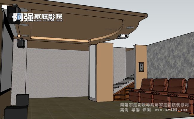 家庭影院設(shè)備擺位方案業(yè)主方希望現(xiàn)場(chǎng)呈現(xiàn)極簡(jiǎn)風(fēng)格、前墻不希望有固定大畫(huà)面在、后墻有大面積文化石也不希望有其他任何功能性設(shè)備在上面等幾大要求。