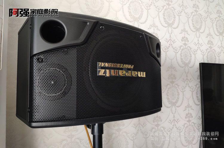 開放式客廳空間由于之前沒有布置任何影音線路,卡拉OK設(shè)備將集中在電視柜的周邊,其中最重要的是卡拉OK音箱,常規(guī)是吊裝在天花頂上,而考慮到露線不美觀,且施工比較復(fù)雜我們采用落地支架的方式擺放,整體視覺重心在電視柜處,同時馬蘭士OK音箱的高度也適當(dāng)調(diào)低適合小空間OK音效回放。