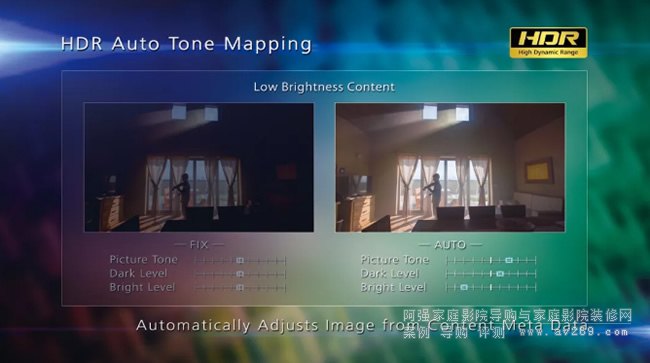 DLA-N11搭載HDR自動色調配對功能,會根據影像基礎數據自動調整每個內容,如Max CLL和Max FALL,這些源碼信息指示HDR內容的亮度,圖像畫質被自動調整,以獲得不同亮度條件下各種HDR圖像的最佳觀賞。