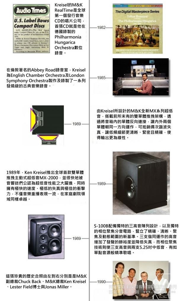 Ken Kreisel是一個發明家,真正的天才音箱設計師。然而可惜的是,Ken Kreisel從來不是一個好的生意人。自1974創立M&K以來,在此后的33年間,Ken創建的M&K Sound曾經風光無兩,獨步天下。然而正因為Ken并不善于發現人性中的陰暗面并加以防范,由于種種產品以外的原因,2007年美國M&K黯然關閉了所有業務,結束運營。Ken Kreisel當時說,如果我不能保護好我自己創辦的品牌,不能夠保證所有喜歡我的產品的人買到的都是真正出自M&K的正宗產品,那么我不如結束這一切,玉石俱焚。同時他也承諾,他一定會鳳凰涅槃,再次歸來。