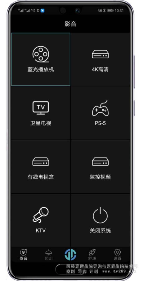 燈光控制界面我覺得沒什么好講的,就是有9個模式,先預設好,給用戶就是一鍵切換,當然也是可以和觀影/KTV的場景模式聯動,看你喜歡了。有人問這么多燈光模式有用嗎?呵呵,當你只有兩個模式的時候肯定不夠用吧,多幾個可以千變萬化啊,況且現在調光、調色那么流行。