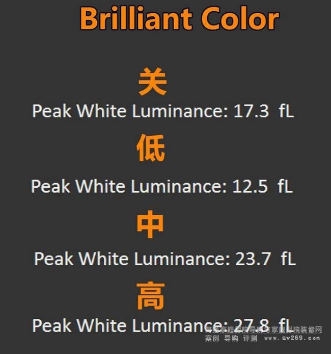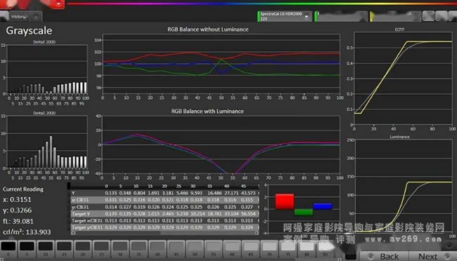 SDR部分,最后送上633A影院模式下,120英寸1.4增益打孔洞,色彩校正完成后BC各檔亮度實測值。