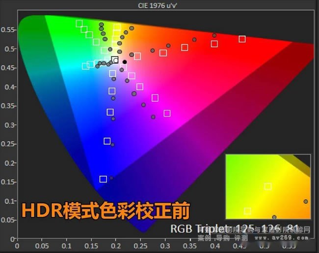 校正白平衡比色彩三角形更容易,這是我選擇用影院模式調試的原因。
