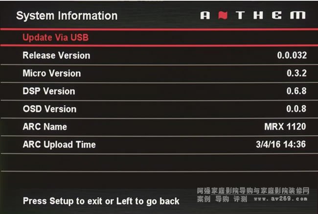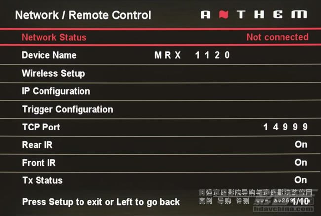 在MRX1120的包裝箱內(nèi),有一個相當大的附件盒,里面裝著的正是Anthem新一代的ARC1M房間聲學校正系統(tǒng),里面除了軟件光盤、USB麥克風、數(shù)據(jù)線之外,居然還附帶了一個做工相當好的三腳架,支撐高度正好與坐在椅子上的觀眾的耳朵水平高度相近,確實相當專業(yè)。ARC1M房間聲學校正系統(tǒng)在使用上只需要依照程序提示一步一步地進行就可以了,只是菜單語言方面還是國際標準的英文菜單,希望日后能加入中文菜單。另外,在安裝上需要留意的是家中需要設置局域網(wǎng),將MRX1120連接到局域網(wǎng)之中,而并不是通過附帶的網(wǎng)線直接與PC相連,而麥克風也并非連接到放大器,而是與PC相連。
