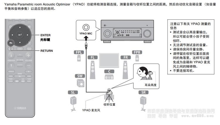 YPAO多點測量 Yes with R.S.C. (聲音反射控制), 3D , 高精度64-bit EQ 計算和多角度測量