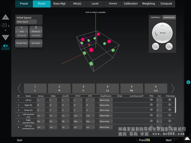 3D remapping不僅能解決喇叭安裝位置不理想的問題,前面我還提到Dolby Atmos、DTS:X與Auro-3D要求的喇叭擺位方式都不相同,既然3D remapping能夠作相當于改變喇叭擺位的處理,就能夠配合不同環繞編碼格式個別要求的多聲道喇叭標準擺位,對應每一種格式都能以3D remapping將所有喇叭的方位與高度「移位」到最理想的位置,確保音場與聲音物件定位的正確性,像這樣的能力除了Trinnov以外,其他所有品牌的制品都沒有。