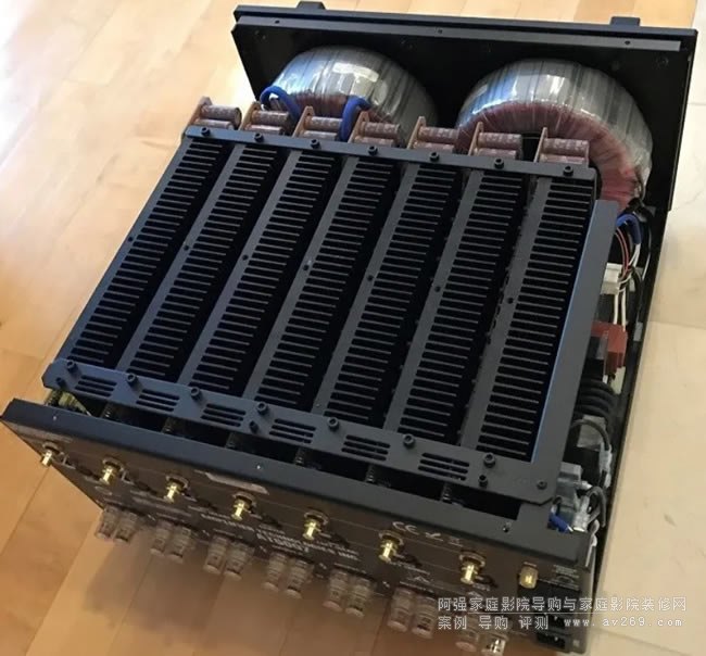 ↑ AT6007的內部構造,7塊獨立的功放線路,電源變壓器也是超大的