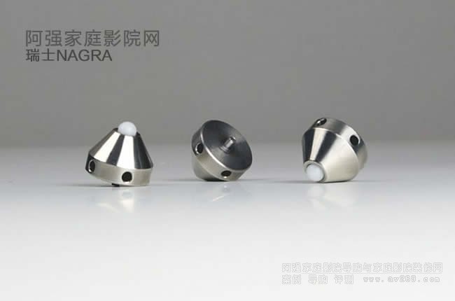 VFS 隨附三個釘或腳,用于裝在設備底部,以便將設備放置在 VFS 板上。主體由完全無磁性的銅鎳鋅非鐵合金 ARCAp 制成。其尖頂部分由 Delrin 樹脂制成。這種樹脂的強度、硬度和穩定性等特性介于金屬和塑料之間。它們為所有 Nagra HiFi 組件提供終極的防振保護。