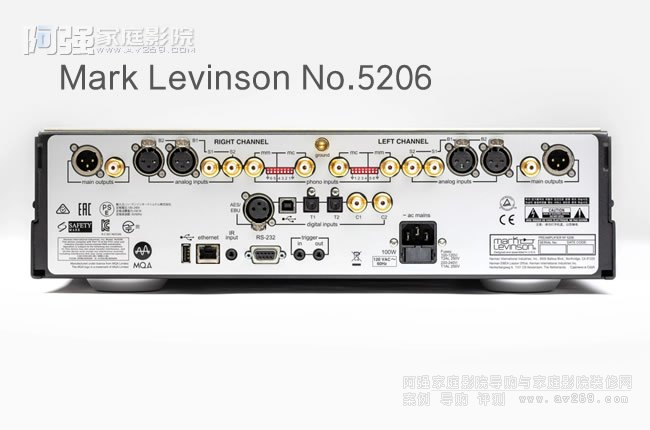 N0.5206 的模擬功能以其專有 PurePath 電路為基礎 – 該電路是一種全分立、直接耦合的雙路單聲道線路電平前置放大器電路,Shelton 設計團隊已獲得有關該電路的一項專利,另一項專利正在申請之中。獨特的單一增益級配以數(shù)控電阻網(wǎng)絡,用于音量調(diào)節(jié),可保持最大的信號完整性和最大可能的帶寬。四個立體聲線路電平輸入 – 兩個平衡 XLR 輸入和兩個單端輸入,采用定制 Mark Levinson RCA 接口 – 每一個均配有獨立的高可靠性信號切換繼電器。