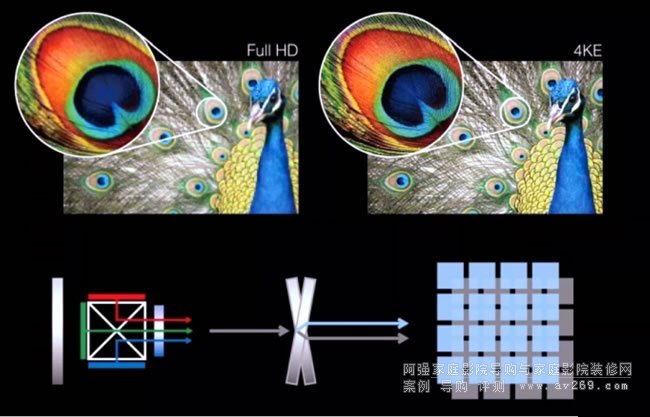 用全新開(kāi)發(fā)Pixel Shift元件與4K圖像處理芯片達(dá)成更細(xì)膩的830萬(wàn)像素真實(shí)4K描繪