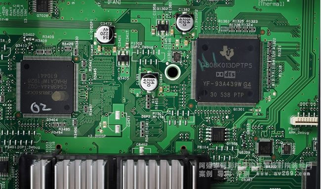 以下為你解說本機的硬體結構。TX-RZ50在數位音訊處理電路配備[雙DSP]:其中之一是Cirrus Logic CS49844A、另一枚則為TI Aureus TMS320DA808(D808K013DPTP5),以往安橋同級型號就是用它們作多聲道或音樂檔解碼播放、THX后處理以及AccuEQ數位音場校正,這次則納入Dirac Live。