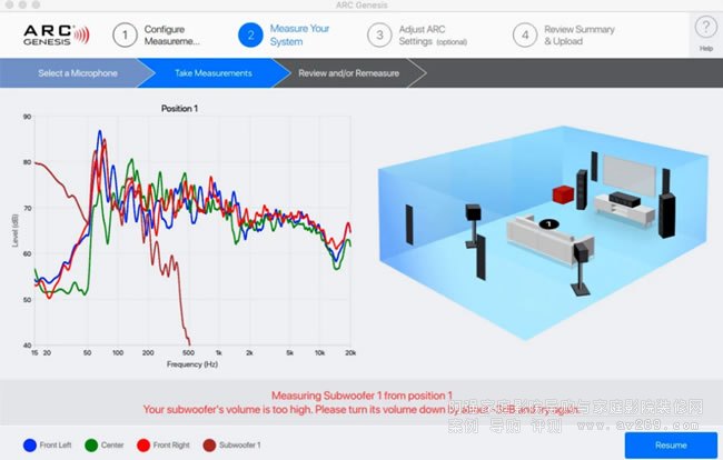 MRX 1140另一個主打功能就是Anthem Room Correction空間聲學校正技術(ARC),這次更配備了最新第三代的ARC Genesis,通過專用的收音咪偵測喇叭及影音空間的聲學反應,獨立調節每個聲道的不同頻段,來獲得最佳的環繞聲效果。跟機提供了重新設計、更加精準的收音咪,而且采用了USB-C端子連接電腦。安裝好PC或Mac版的ARC軟件,讓電腦接駁好測聲麥克風,并且和MRX 1140連接到同一個網絡之后,就可以在軟件界面找到MRX 1140并開始校正。支持了5至10個位置的收音偵測,過程大約10至20分鐘,指示相當清晰,設定好基本的喇叭配置,例如5.1.2、7.1.4、天花聲道位置,其他跟住步驟就就可以輕易完成。