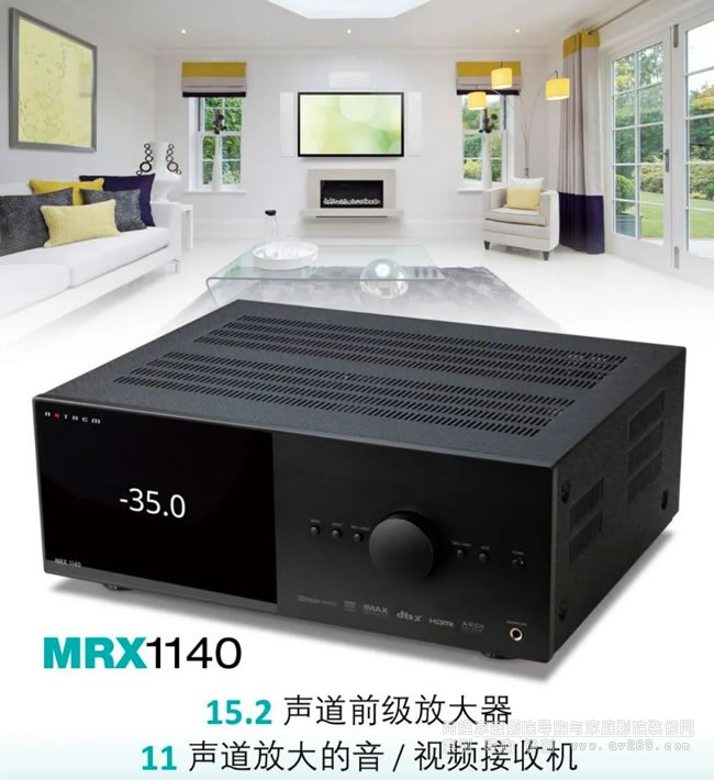 有許多高級玩家都打算搭建7.1.4聲道的完整Dolby Atmos系統,不過市面上支持11聲道輸出的A/V合并機選擇不算多。加拿大音響名廠Anthem(圣歌)最新推出的MRX 1140就具備了Dolby Atmos 7.2.4聲道的功率輸出,15.2聲道(15.2 Pre-out)前級解碼。支持DTS:X、IMAX Enhanced音效,功能強大的Anthem Room Correction (ARC) 圣歌房間校正系統,算法更精準,設置更方便,帶來完全的沉浸式影音體驗,細節完美演繹。