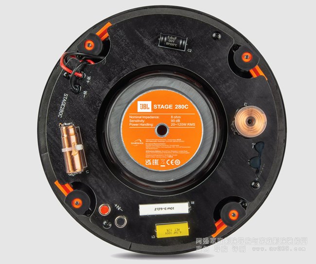 JBL STAGE 280C圓形吸頂喇叭,無擋板設(shè)計和磁性漁獲格柵可在不影響內(nèi)飾的情況下安裝。 • 纖薄的設(shè)計可降低深度,即使在狹窄的墻壁之間或天花板背面也能安裝。 采用“狗腿結(jié)構(gòu)”,可以輕松可靠地固定。 在短時間內(nèi)安全施工。 采用聚纖維素錐體,重量輕,韌性強(qiáng)。 此外,通過配備 JBL 傳統(tǒng)的 SFG 磁路,可實現(xiàn)緊湊的嵌入式揚(yáng)聲器,同時提供低失真、能量感的聲音。 采用25mm直徑的鋁圓頂高音揚(yáng)聲器,實現(xiàn)清晰、清晰的高音域。 高剛性擋板具有波導(dǎo)結(jié)構(gòu),可抑制不必要的輻射并實現(xiàn)平滑的頻率響應(yīng)。 • 高音揚(yáng)聲器配有聲學(xué)鏡頭,可調(diào)整方向特性。 此外,它采用“同軸雙向”結(jié)構(gòu),在整個頻段中實現(xiàn)清晰、準(zhǔn)確的聲像定位。