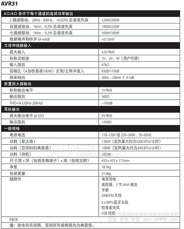 此次我們從基本信息里面得知,合并機型全部采用7聲道放大,主要是放大技術由G類和AB類區分,放大功率也相對應變化。