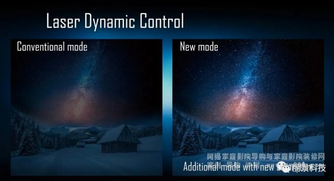 以前的動態(tài)激光模式以畫面整體的平均亮度為基礎(chǔ)進(jìn)行調(diào)節(jié),新的動態(tài)激光模式是以亮度的峰值為基準(zhǔn)進(jìn)行調(diào)整,因此可以獲得更加明亮的畫面感受。特別在重現(xiàn)暗夜中閃耀的群星以及夜景時,畫面會有特別生動的感覺。此外,在放映峰值亮度較低的圖像時,可以享受到更高對比度的圖像。