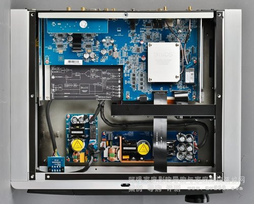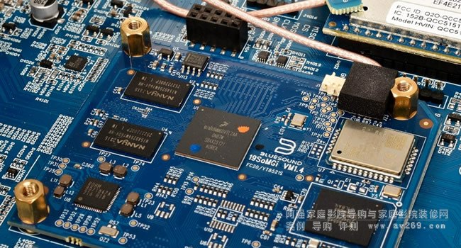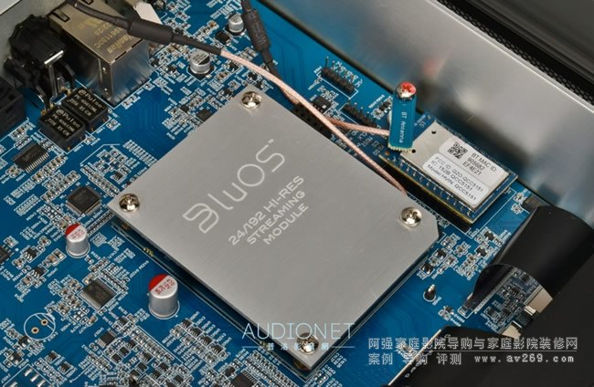 ▲本機的BluOS串流模塊與藍牙模塊都是裝在數位主板上﹐在這張照片BluOS串流模塊后方·機背之前的兩個小方塊是給數字同軸輸入使用的隔離變壓器。