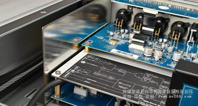 M66把所有與聲音相關的電路全部放在機箱內后半部﹐以此盡量縮短聲頻電路與輸入·輸出端子之間的距離﹐讓聲音更直接并降低噪聲﹐主要電路分為上下兩層﹐上層是數位主板﹐還包含4個獨立超低音聲道的數類轉換電路;下層則是聲頻電路板﹐包含唱放·左右聲道的數類轉換﹑模擬音控·前級輸出緩沖放大以及耳機放大電路。為了降低數字電路對模擬電路的干擾﹐本機在上下層電路板之間加上一塊金屬板阻擋電磁波﹐電源電路則是裝在機內的前半部﹐盡可能與聲頻電路板最敏感的部分(唱頭放大·模擬輸入)保持最遠距離。