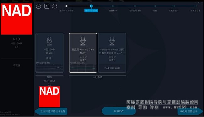 ▲正規的Dirac Live校正請使用筆記本電腦執行最新版的Dirac Live應用程序﹐并且可以使用精度更高的測試麥克風·導入麥克風校正文件。
