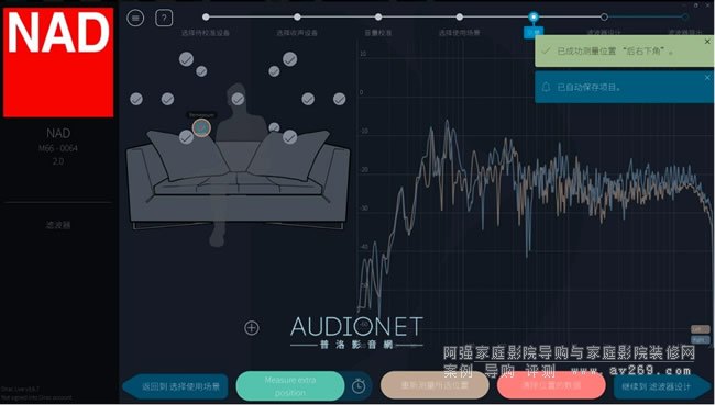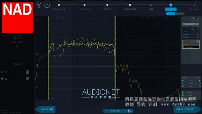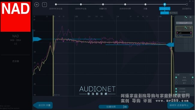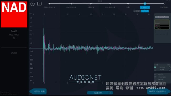 在實際試聽之前我先完整執行了Dirac Live的校正程序﹐初學者只要按照步驟執行測試完畢后﹐選擇兩種預設的目標曲線型態﹐最后計算濾波器﹑傳送給M66執行