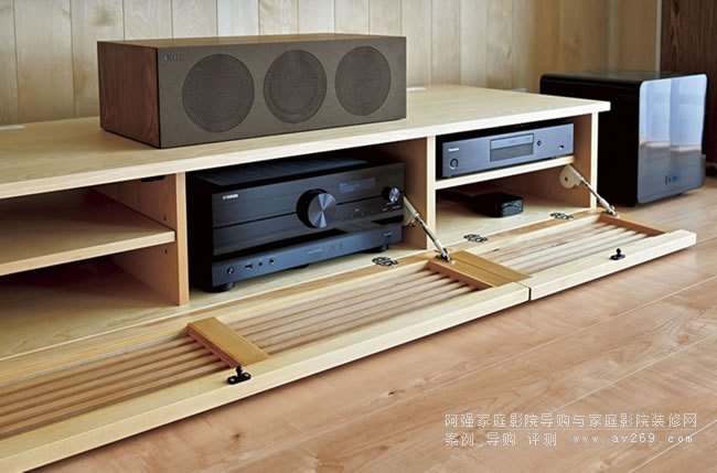 視頻設備采用JVC 8K投影機。畫面采用菊地130英寸電動幕布,同時保留了液晶電視。雅馬哈AV放大器“AVENTAGE”的巔峰之作RX-A8A和聲稱擁有松下“Deega”歷史上最高圖像質量的“DMR-ZR1”等設備都裝在由樺木櫻桃木制成的AV機架中。