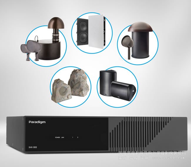 SVX-1202 為流行的 Paradigm 戶外揚聲器和無源低音炮型號定制了預設(shè)的 DSP 設(shè)置,可輕松配置和最佳聲音性能。