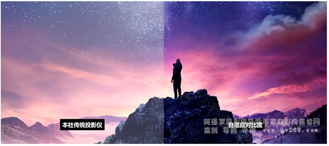 自適應對比度通過自動調整激光輸出到畫面,使影像更具深度,從而形成高對比度。使明亮場景看起來更明亮,而昏暗場景則保留深黑色和陰影的細節。