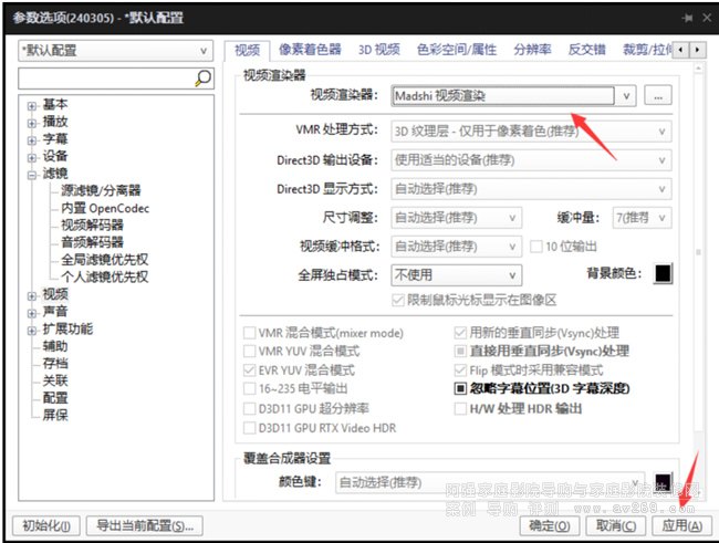進去以后右鍵管理員運行,安裝好后,打開potplayer,按f5快捷鍵進入設置選項。視頻選項這里選madshi,然后點應用