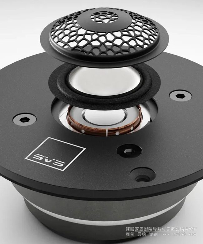 有機蜂窩晶格高音單元擴散器:采用源自有機蜂窩結(jié)構(gòu)的半隨機模式,有效改善離軸響應(yīng),擴大聆聽甜點。