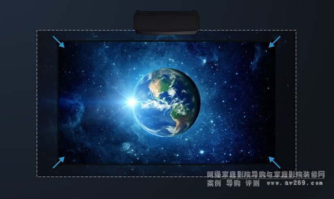2.2m即可投滿百時,2.7m即可投射最佳建議的120吋大畫面,搭配1.3m大變焦和梯形校正,適配各種尺寸空間。