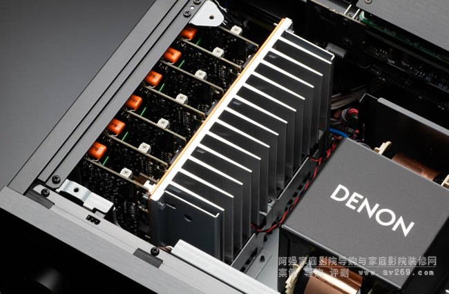 AVR-A10H 的 13 通道單片放大器每通道可提供 150 W 的功率。與高端放大器設計的典型做法一樣,每個通道都建立在自己的 PCB 上,以最大限度地減少串擾和失真。