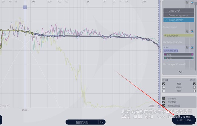 調(diào)節(jié)有源低音炮背板音量,讓所有音箱數(shù)值在同一數(shù)值左右。 那么可以下一步來測量了,(注意房間安靜)