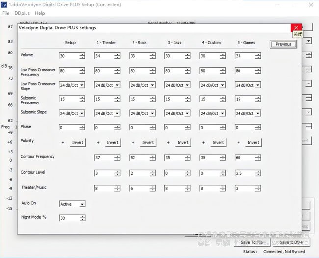 (根據需求手動調整8段EQ及Q值參數)將數據線在DDP關機下插入前面板的左上角USB插口,另一段給到PC端電腦(目前尚不支持MACos系統,只支持windows系統,在網址https://www.velodyneacoustics.com/en/manuals-and-documents/中下載安裝包)安裝成功后會進入以下界面