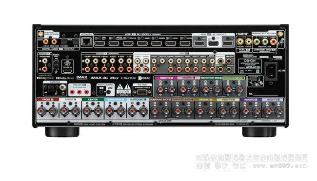 - 13.4聲道支持:AVC-A10H支持13個主聲道和4個獨立低音炮輸出,可構建9.4.4或7.4.6等復雜聲場布局,滿足沉浸式家庭影院需求213。