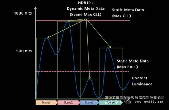 HDR10 是 HDR 播放的基本標準,它只有兩種類型的信息:MaxCLL(表示內(nèi)容的最大亮度)和 MaxFALL(表示平均最大亮度)。在HDR10+中,每個場景的亮度信息都作為元數(shù)據(jù)嵌入到內(nèi)容中,因此可以根據(jù)場景進行色調(diào)映射,并且可以忠實地再現(xiàn)創(chuàng)作者想要的HDR圖像。