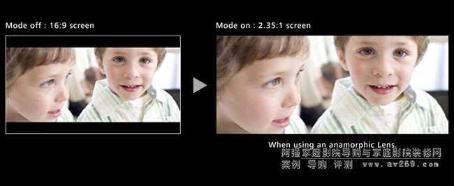 通過將投影機與第三方變形鏡頭結(jié)合使用,動態(tài)創(chuàng)建 2.35:1 電影膠片寬高比的畫面,獲得身臨影院般的感受。