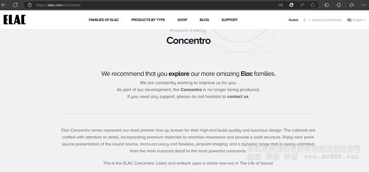 德國Elac意力作為音響界的老牌,從黑膠唱機、發(fā)燒音箱再到家庭影院系列都有許多值的稱贊的產(chǎn)品和技術(shù)呈現(xiàn),尤其是他的JET氣動高音是他的代表技術(shù)。近日阿強準備查看他的新旗艦Concentro創(chuàng)世2系列的時候發(fā)現(xiàn)官網(wǎng)已經(jīng)針對此產(chǎn)品做停售通告,作為一款成熟旗艦系列,匯集意力最新技術(shù)與材料于一身的創(chuàng)世為何停售我們不得而知。后續(xù)有進一步消息我們將會呈現(xiàn)給各位。下面是截圖供參考!