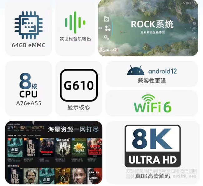 1、四核ARM Cortex-A76 2.0G + 四核ARM Cortex-A55 1.7G、4G內存+64G閃存,8K@60fps輸出