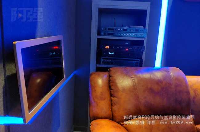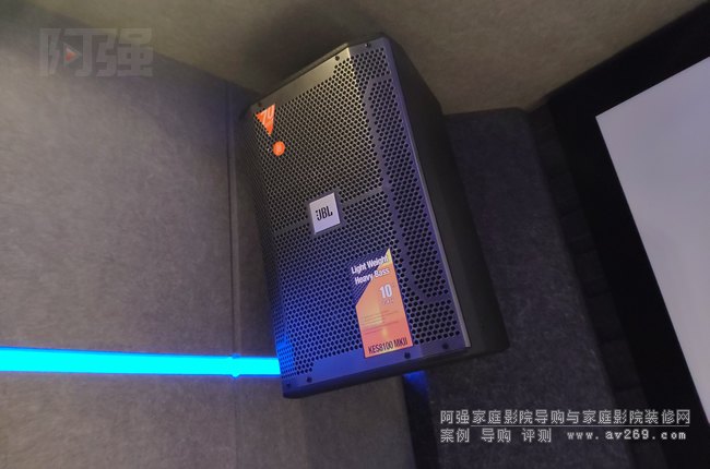 在保留業(yè)主原有設(shè)備的基礎(chǔ)上,團隊進行了針對性升級。視頻系統(tǒng)方面,原有愛普生投影機保留使用,更換了高增益1.3增益大尺寸投影幕布,音頻系統(tǒng)預(yù)增兩只頂置音箱,將原有7.1系統(tǒng)可無縫升級為7.1.2杜比全景聲配置,原JBL L系列音箱均外擺放置。新增的卡拉OK系統(tǒng)包含一臺專業(yè)人聲效果器、兩只10英寸OK音箱和OK功放,無線麥克風(fēng)及點歌機等設(shè)備。特別設(shè)計的設(shè)備柜采用嵌入式安裝,在后墻安置。