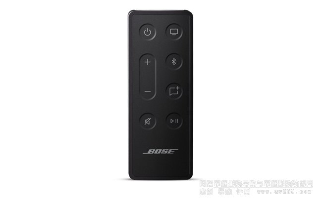 遙控器:電源、音量、靜音、音源按鈕(電視、藍牙、Bose 音樂 App)、播放/暫停