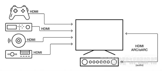 而ARC和eARC的另一個(gè)好處是,在播放設(shè)備不支持雙HDMI輸出的情況下,也能將音頻信號(hào)通過電視傳輸至家庭影院放大器和回音壁。