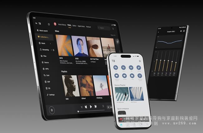 在軟件方面,T8 集成了 TIDAL、Qobuz、Amazon Music、Deezer 和 TuneIn 等主流流媒體服務,支持 TIDAL Connect、Qobuz Connect 和 Roon Ready 播放。支持高達 DSD512 和 PCM 768kHz/32 位的高分辨率格式,以及無縫播放和多維音樂管理,可滿足大量收藏的需求。Eversolo 專有的 Evotune 系統通過 FIR 算法提供專業級校正,以實現房間集成。用戶可以使用 Eversolo EM-01 麥克風甚至智能手機麥克風來抵消反射和駐波,根據自己的空間定制播放。